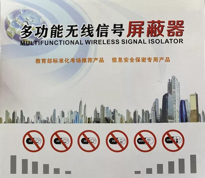 目前,考場用的手機信號屏蔽器都是全頻段的,它不但能干擾三家運營商2/3/4/5G的全部頻段,還能將WIFI信號和藍牙信號也全部屏蔽掉,徹底解決考場上電子產品作弊的可能性。