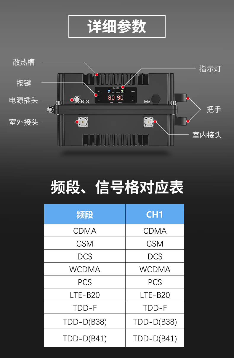 產(chǎn)品名稱:三頻手機信號放大器4G5G覆蓋工程直放站酒店商場地下室隧道
