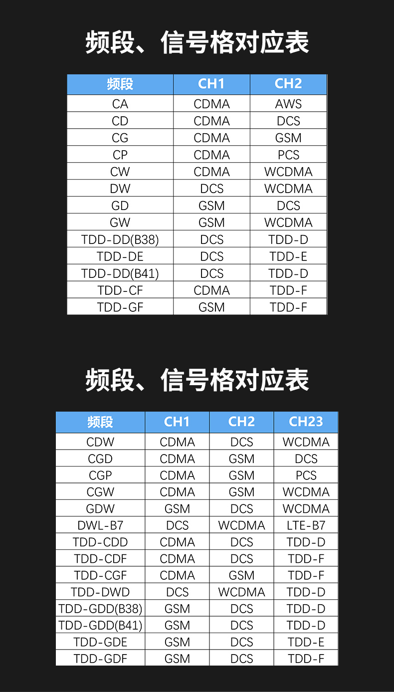 適用頻段:CDMA 、GSM 、DCS 、WCDMA 、1900 、2600 、